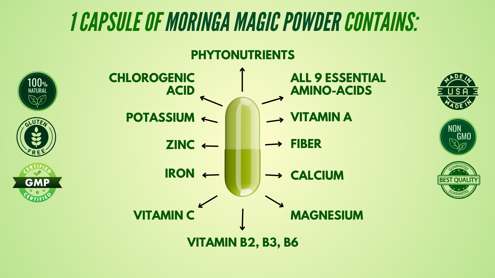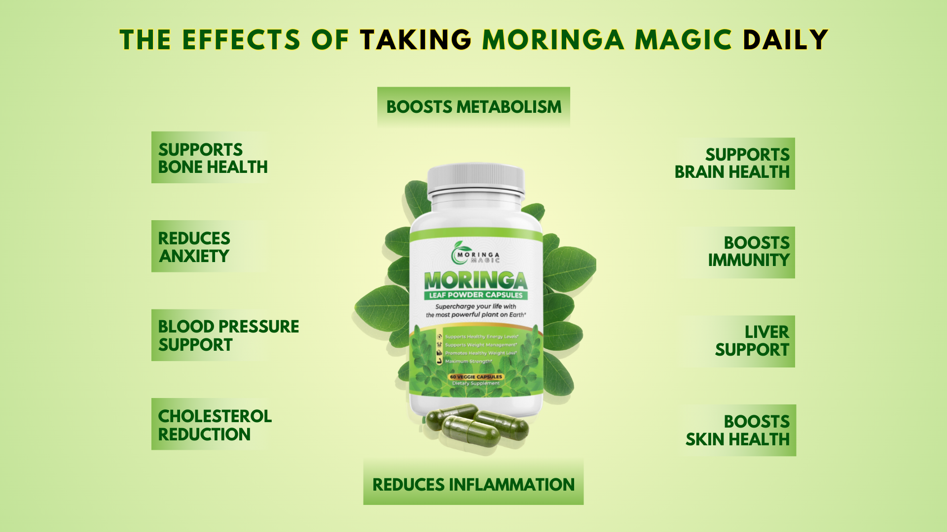 This nutrient-rich plant boosts energy, strengthens immunity, supports digestion, and promotes overall wellness. With its natural anti-inflammatory and detoxifying properties, Moringa is one of the most effective supplements for daily health. Truly, it’s nature’s #1 superfood for a healthier, stronger you.